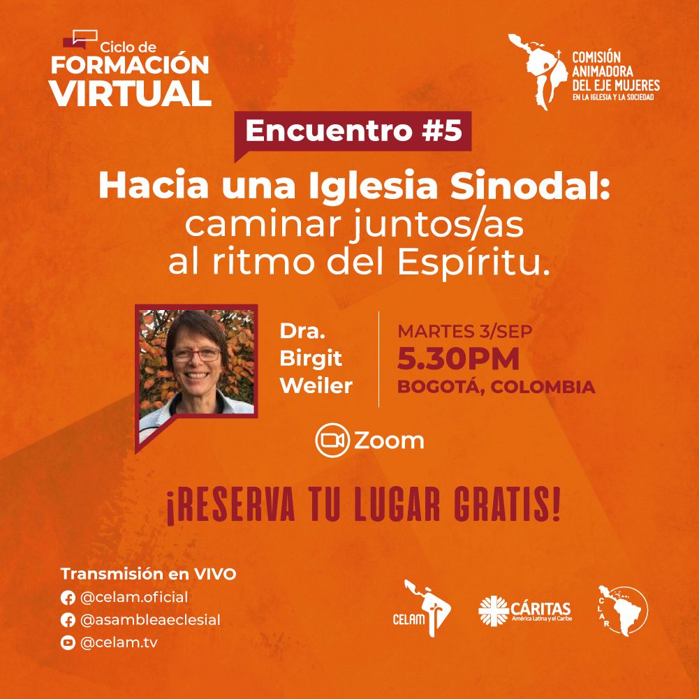 Participa el próximo martes 3 de septiembre a las 5:30pm (Colombia), en el Ciclo de Formación Virtual: Hacia una Iglesia Sinodal: caminar juntos/as al ritmo del Espíritu.