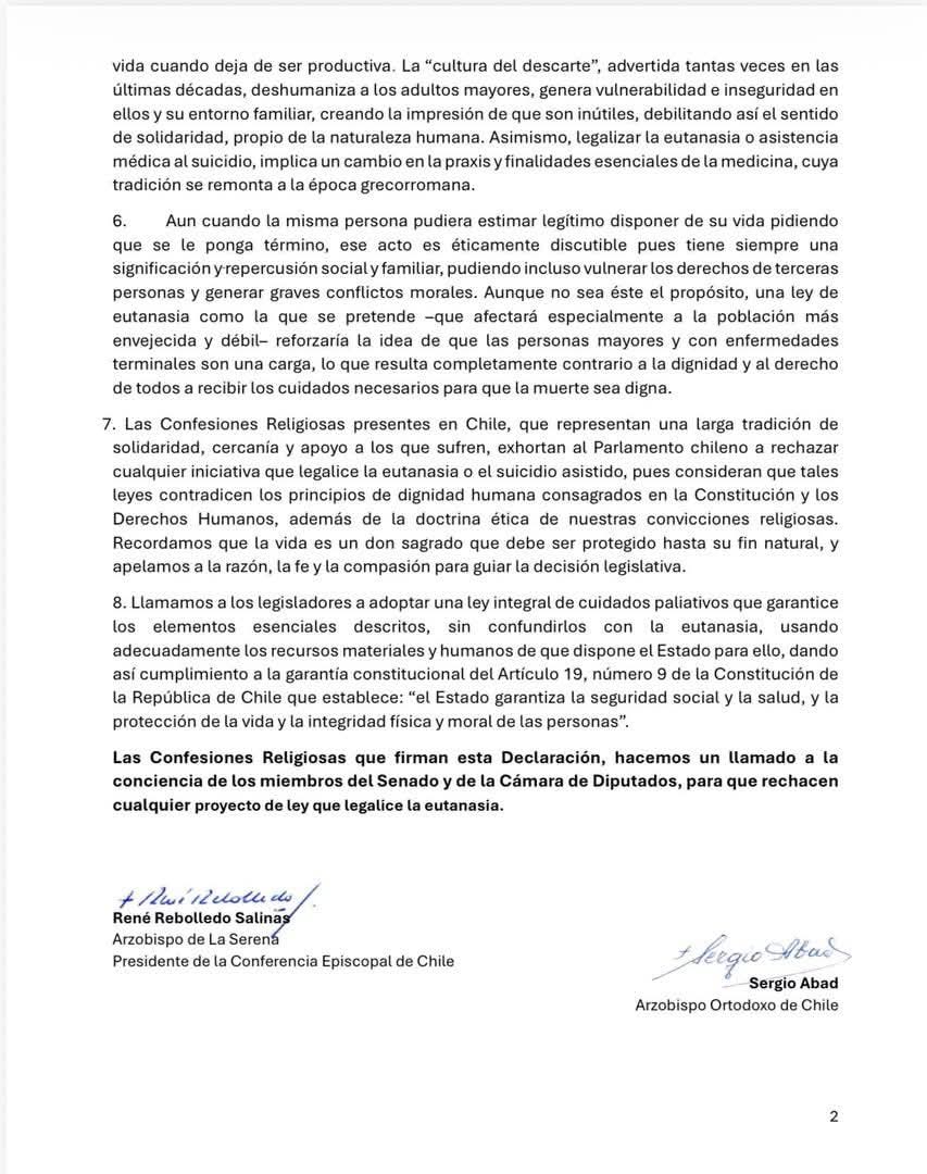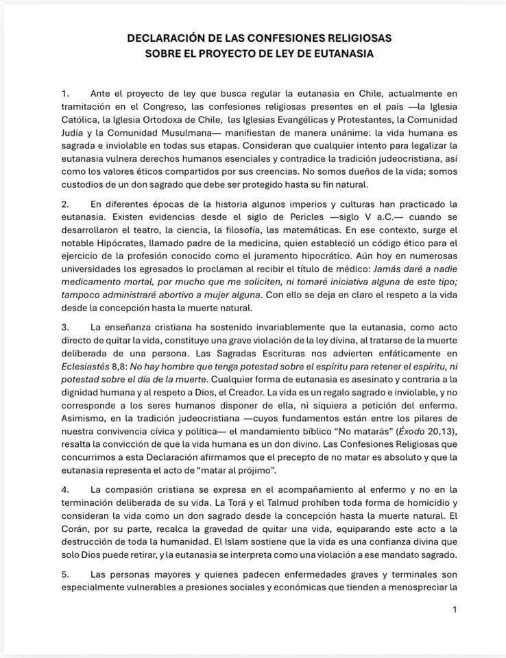 Las confesiones religiosas presentes en nuestro país —Iglesia Católica, Ortodoxa, Evangélicas y Protestantes, Anglicana, Comunidad Judía y Comunidad Musulmana— hemos alzado una sola voz: la vida humana es sagrada e inviolable en todas sus etapas.